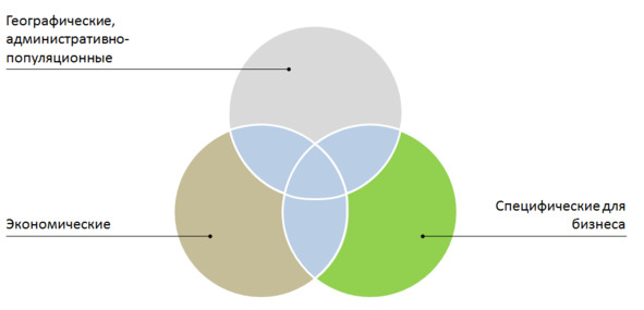 Всего о любой территории, на которой собирается работать компания, нужно знать три группы сведений: географические и административно-популяционные, экономические и специфические – для конкретного бизнеса.