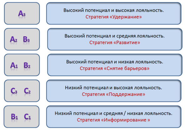 Стратегия «Развитие»: потенциал есть, и лояльность есть, но нет достаточного уровня того и другого. Необходима разработка комплекса мероприятий по убеждению администрации сети приобретать продукты компании чаще, чем она это делает. Для этого имеет смысл работа с УСТМ, ТМА (трейд-маркетинговые активности) по отдельным взаимоинтересным продуктам и т. д.