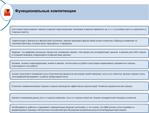 Осталось привести только те функциональные компетенции, которыми должны обладать КАМы для выполнения своих должностных обязанностей.
