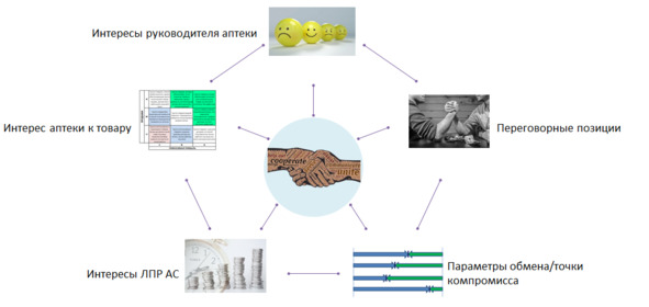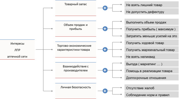 Начну с интересов лица, принимающего решение в аптечной сети (ЛПР АС). На схеме эти интересы выглядят примерно так: