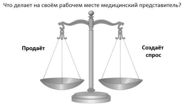 Вопрос этот вынесен мною на картинку ниже. «Что делает на своём рабочем месте медицинский представитель – продаёт или создаёт спрос?»