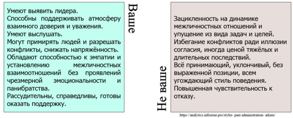 paeI «Интегратор»: способен объединять людей; обладает творческими способностями; проясняет недоразумения в коллективе; чувствует и понимает других людей; не стремится стать незаменимым.