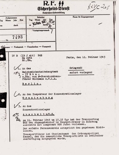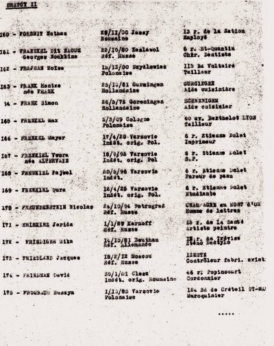 Документация железнодорожного конвоя № 47, которым Юрий Фельзен (№ 170 Freudenstein, Nicolas) был отправлен из Дранси в Освенцим. Archives du Centre de documentation juive contemporaine, Paris, France. Liste originale du convoi de deportation no. 47 du 11.02.1943.
