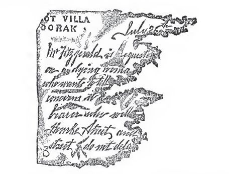 He took it over to the window, and spread it out upon the table. It was dirty, and half burnt, but still it was a clue. The above is a FAC-SIMILE of the letter: —