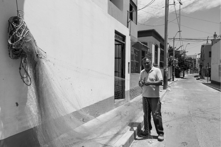 Bajo al puerto a ver si hay actividad. Solo veo a un pescador que ha montado su puesto y a dos extranjeros que han llegado en sus bicicletas a comprar pescado. Tres bañistas del barrio disfrutan de una playa casi paradisíaca. La Policía les insta a retirarse sin mayores consecuencias. Aún es temprano, los pescadores han salido en sus botes a las cinco de la mañana y regresarán a las tres de la tarde, pero encuentran dificultades para que lleguen sus compradores, porque la Costa Verde está cerrada. Me lo explica César Benitez, el vigilante. También Ventura Gonzales que tiene ahora sus dos botes chicos, de unos veintidós pies, echando sus redes en la mar. Aprovecha que las cosas están como están para arreglar sus redes, igual que su vecino, Toni Rivas.