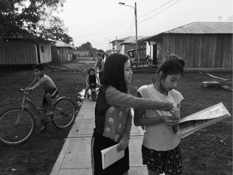 Tendría que hacer una crónica previa, la del primer día tras el anuncio de las medidas de aislamiento decretadas por el Gobierno de la República del Perú, presidido por Martín Vizcarra. El domingo 15 me pillo en Saramurillo, una comunidad en el distrito de Urarinas (Loreto). Sabía que tenía que salir el mismo día, pero quería fotografiar una vez más a los chibolos que jugaban al fútbol con sus uniformes nuevos, y ayudar a Zuleica y Xiomara a empezar el inventario de libros de la biblioteca de la Cocha. Además fui testigo y fotografié una ceremonia de bautismo evangélica en el Marañón, dirigida por el hermano Josué, con quien más tarde viajaría a Nauta.