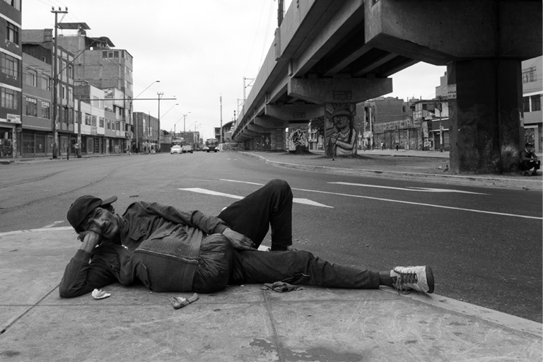 Me quedaba hablar de Gabriel. Lo encuentro en Aviación, postrado en el suelo y hablando con el cielo. Me acerco hasta los dos metros prudenciales y le pregunto si no le han dicho nada por estar en la calle durante el toque de queda. Yo soy amigo de todos los policías, me conocen como el Patriota, responde, y señala el semáforo, donde hay un policía. Yo he inventado los dardos que te duermen, los disparas con una escopeta al cuello y así no tienen que matar a nadie. También las balas de no sé qué, que tampoco matan... Me cuesta entenderle, en su discurso se van deslizando nombres y situaciones de la historia peruana: también me conocen como el Príncipe Yhawel, me habla ahora de la Tora, del nombre de dios, quisiera acercarme y ponerle un micrófono, otra vez será, no son tiempos de proximidad.