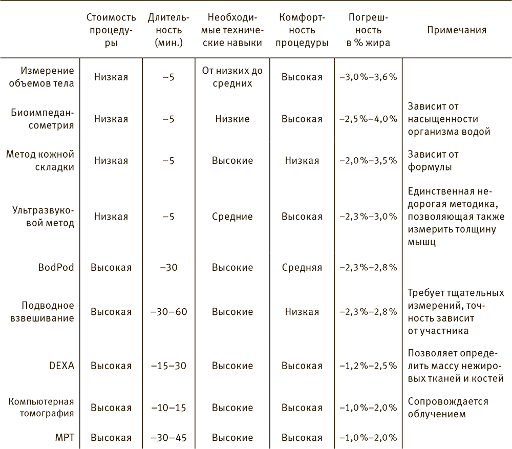 В таблице приведены различные испробованные мной способы замера доли жира, расставленные в порядке от наименее точных к наиболее точным[23].