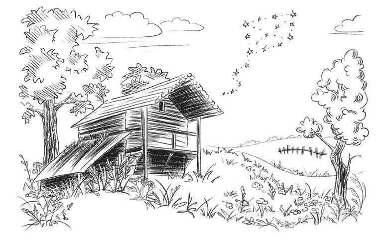 Тоха подошёл к овину и аккуратно вынул правую петлю из косяка, прикрыл за собой дверь, забрался наверх по лестнице и улёгся на лежанку из сена, закинув руки за голову.
