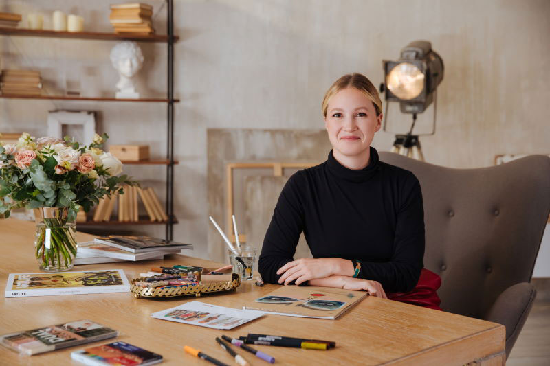 В детстве всё свободное время она посвящала срисовыванию обложек журналов и впоследствии детское увлечение превратилось в профессию. Художница публиковала свои работы, выполненные акварельной пастелью на крафтовой бумаге, в Instagram. Именно там её заметили и предложили первый крупный заказ.
