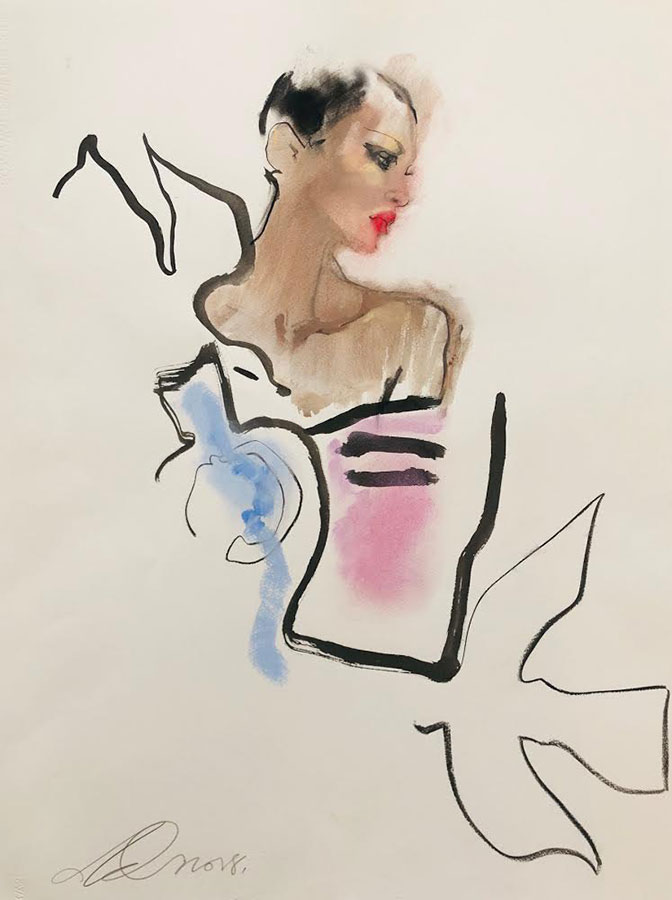 Его иллюстрации, выполненные при помощи туши и акварели, отличаются изяществом и лаконичностью, а список клиентов впечатляет: Tiffany & Co, Chanel, Dior, Oscar de la Renta, Omega, Bloomingdales, Barney’s, Harrods… Для серии портретов ему позировали самые известные и красивые женщины мира: Элизабет Тейлор, Линда Евангелиста, Катрин Денёв, Дита фон Тиз. А опубликовать его иллюстрации на обложке считают честью лучшие издания – Vogue, Harper’s Bazaar, Elle, Vanity Fair, The Times.