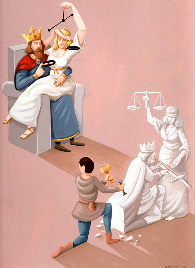 Иллюстратор-фрилансер из Италии сотрудничает с Washington Times, GQ Magazine, Politico, Corriere della Sera, Marie Claire, Boston Globe и другими газетами и журналами, а также различными рекламными агентствами. Его ёмкие и хлёсткие диджитал-иллюстрации высмеивают пороки и нравы современного общества, что принесло Марко Мельграти известность и репутацию современного карикатуриста.