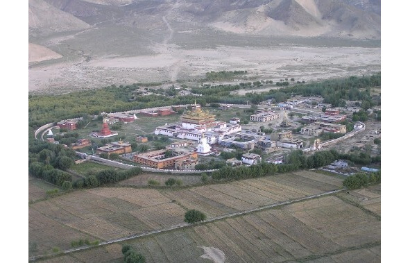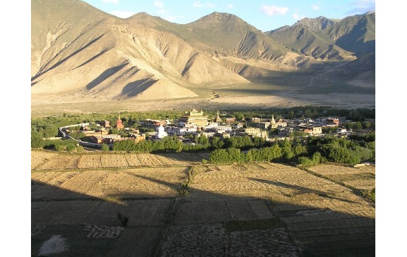 Солнце уже катилось к закату, когда мы, обойдя монастырь с востока, начали восхождение. Усталость и кислородное голодание не позволяли развивать быстрый темп. Но, тем не менее, через час мы достигли вершины, и смогли взглянуть на окружающий пейзаж с высоты 150м. Красиво. Безукоризненная архитектура монастыря, ориентированная строго по сторонам света радовала глаз своей завершённостью. Правда, качественные снимки в этот раз сделать не удалось, ввиду слабой освещённости – солнце уже скрылось за горизонтом. Зато на следующее утро природа вознаградила тех, кто решился на повторное восхождение – пейзаж во всём своём великолепии раскрылся, словно волшебная картина. А пока предстоял спуск с изрядно ослабленной освещённостью. В общем, спустились уже затемно с использованием фонариков. Но в этот вечер предстояло не менее захватывающее зрелище, заставившее временно забыть дневную усталость. Ночное небо Тибета. Какие угодно эпитеты не смогут выразить нахлынувших впечатлений. Бриллиантами звёзд можно было любоваться, не отрываясь. А яркость Млечного пути такова, что может сравниться, наверное, с Луной. Взгляд отмечает тот факт, что яркость звёзд не убывает на горизонте – небо абсолютно прозрачно от зенита до горизонта. Невооружённым глазом, без напряжения, вполне можно было наблюдать туманное пятнышко – галактику «Туманность Андромеды». И кажется, что просматриваются все рукава нашей Галактики. Мой ТБ 30х90 показал ещё массу объектов звёздного неба во всём их великолепии. Не хотелось уходить, но усталость всё же брала своё. Едва добравшись до кровати, провалился в сон. Утром планировался ещё один подъём туда же, для встречи рассвета и фотосъёмок с нормальным освещением.