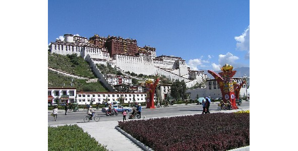 В Лхасу прибыли во второй половине дня. Разместились в гостинице с интересным названием «Мандала». Гостиница расположена непосредственно рядом с главным монастырём Тибета под названием «Джоканг». Номер хороший, чистый с тибетским гостеприимством. Окна нашего номера выходят как раз на монастырь, до которого метров 100. Так что мы в полной мере вкусили все прелести приготовления к службе в монастыре – два раза в сутки волей или неволей приходилось окуриваться благовониями, которые источали расположенные по четырём сторонам монастыря, большие курильни. Кроме того, между нашими окнами и стеной монастыря проходила «тропа» паломников и пилигримов (перед посещением монастыря все они совершают священную кору вокруг его внешнего периметра). Расселившись и приняв душ после дороги, отправились на обед. Гиды посоветовали местный ресторан с русским названием «Дуня». Хорошее впечатление. Быстро и вкусно готовят, хорошо обслуживают. Говорят, что хозяин европеец. Вызвал удивление вес стульев – они оказывается металлические и, наверное, по 20 кг, если не больше. После сытного обеда прогулка по городу. Впечатление хорошее. Чисто, ни какой толчеи и муравейника – всё чинно и размеренно, и по тибетски не торопясь. Люди доброжелательны, довольно многие говорят по – английски, во всяком случае, понимают, всегда предупредительны и радушны. Вспомнил, что при подготовке не нашёл у себя в городе широкополую шляпу и вот теперь необходимость заставила приобрести. Благо искать долго не пришлось. За умеренную цену (20 юаней, это менее 3 долларов) удалось найти удобный и практичный головной убор. В общем-то, уставши с дороги, долго гулять не хотелось. Побродив по центральной части, возвратились в гостиницу, когда только начало темнеть. В номере телевизор с 50-ю программами, а за окном нескончаемый поток паломников к монастырю, который ослабевает лишь далеко за полночь, а возобновляется с началом рассвета. Некоторых участников нашей экспедиции довольно серьёзно прихватила горная болезнь и пришлось даже обращаться к врачам. Высота в Лхассе 3500 м над уровнем моря и, соответственно, для адаптации потребуется не менее 3 суток. Завтра предстоит посещение зимней резиденции Далай Ламы – Дворца Потала и летней Норбулингка.