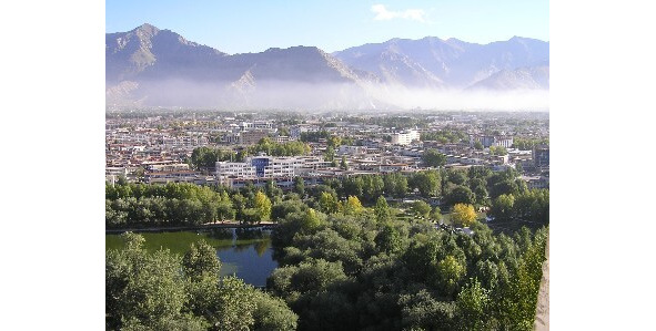 Вид на утреннюю Лхасу с подъёма к Дворцу Потала