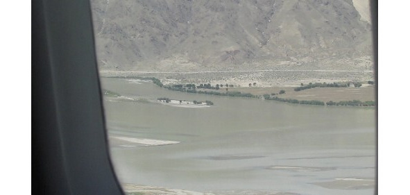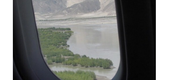 Около шестисот километров и чуть более часа лёту на исходе -выполняем предпосадочный маневр на аэродром Гонггар, это приблизительно в часе езды от Лхасы. ВПП на берегу Брахмапутры (Цанг По).