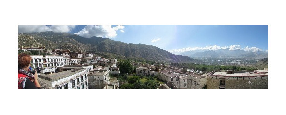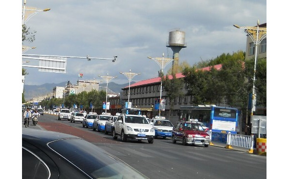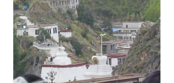 По центральному проспекту Лхасы мимо сверкающего во всей красе дворца Потала на окраину города к монастырю Дрепунг, проехали около 8 км от начала движения с постепенным подъёмом в горы. Превышение относительно нашего отеля 220 м. Энергетично очень положительное место, особенно один из ближайших гребней, выделяющийся своими гладкими камнями.