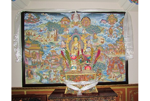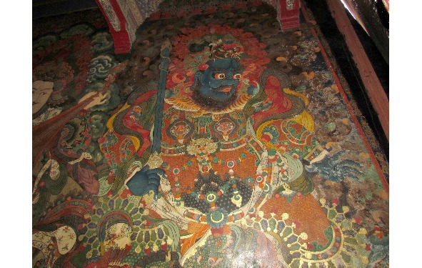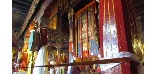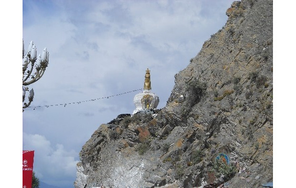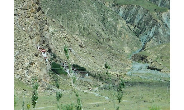 После экскурсии по монастырю мы забрались вверх метров на 50. Очень красивые виды долины Брахмапутры (Цангпо) и окружающей местности, можно делать хорошие панорамы. Удачное место для медитации. Справа от тропы нашего подъёма находится постамент где по праздникам выставляется гигантская танка (сейчас видны только крепления).