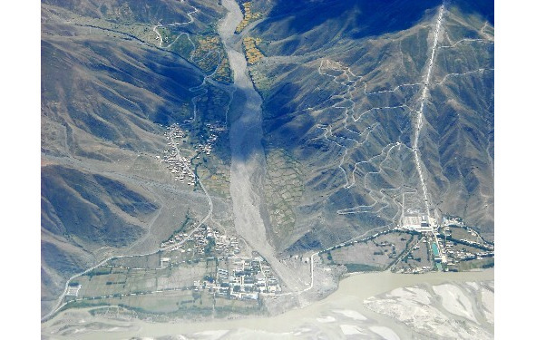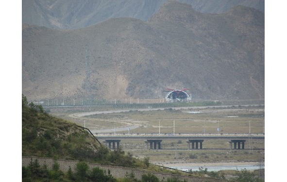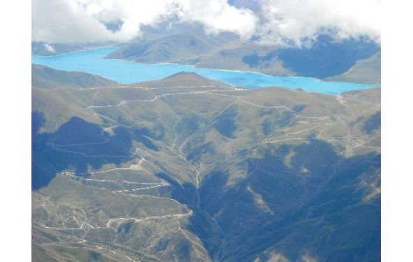 Весь серпантин (по которому мы будем ехать девятого сентября) на подъёме к озеру и даже водовод от него к электростанции на склоне горы возле Брахмапутры (Цанг По) видны как на ладони.