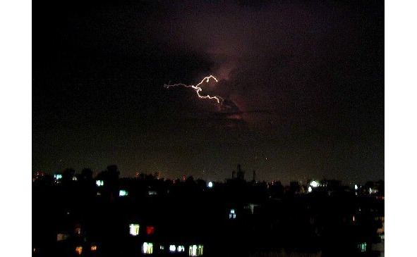 Вечером с наблюдательной площадки верхнего этажа нашего отеля привлекательные виды красиво закрученных электрических разрядов даже чем-то напоминающих трезубец и вдалеке Сваямбунатха в свете прожекторов.
