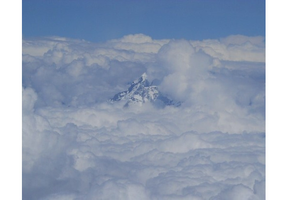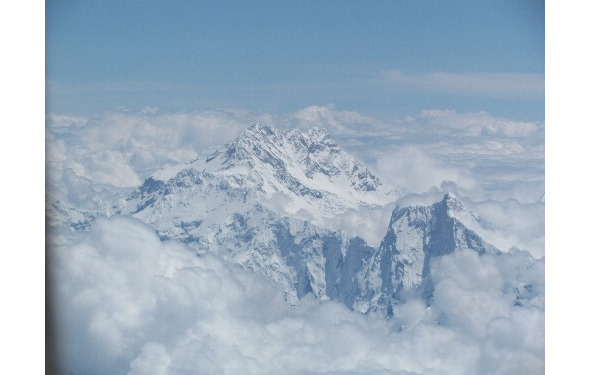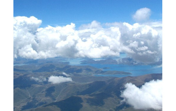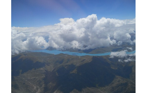 Полтора часа полёта. Эверест почти не виден (кое-где из облаков подпирают небо другие вершины), зато Ямдрок-Цо во всей красе!!!!