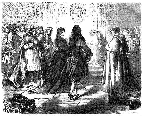 У самого возвышения располагались приспешники Гонзаго: Навайль, Жиронн, Монтобер, Носе, Ориоль и прочие; они первыми расступились, образовав перед принцем и принцессой широкий проход.