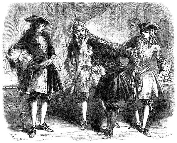 Плюмаж отвесил поклон с благородным изяществом, присущим всем его действиям. Галунье поклонился не столь ловко, но тем не менее как человек, потершийся в свете. Плюмаж-младший, обведя взглядом разряженную толпу, которая только что хохотала над ними, громко и внятно произнес: