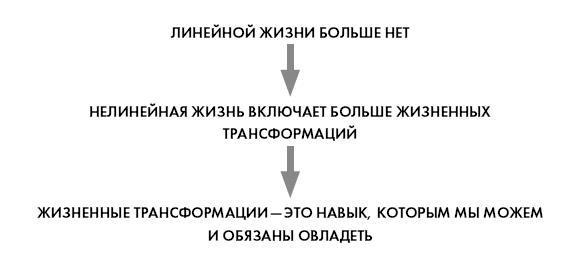 Самым большим из этих последствий является то, что, несмотря на все преимущества нелинейной жизни – личную свободу, возможности для самовыражения, проживание своей собственной жизни, а не той, которую хотят для вас другие, – это обязывает всех нас проходить через практически подавляющее большинство жизненных трансформаций. Это подводит к моей второй цели: понять эту быстрорастущую разновидность жизненных событий.