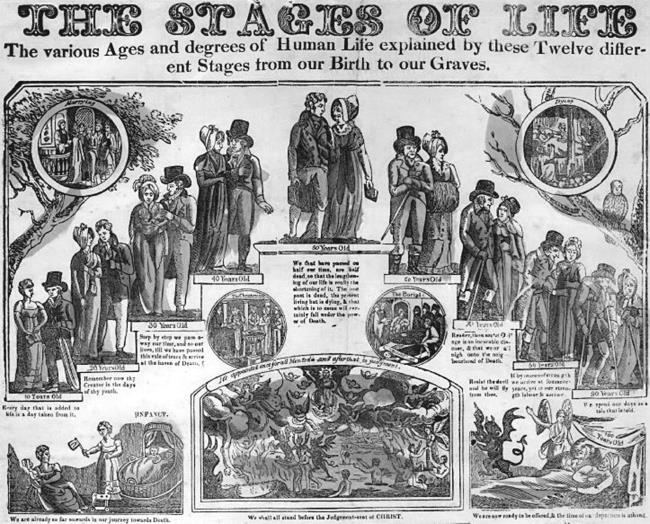 Весь мир – театр.В нем женщины, мужчины – все актеры.У них свои есть выходы, уходы,И каждый не одну играет роль.Семь действий в пьесе той.(Перевод Т. Л. Щепкиной-Куперник)К началу Нового времени идея жизни, идущей по кругу, окончательно угасла, ее сменило представление о жизни, протекающей через серию возрастов, фаз или стадий. Мало кто знал или заботился о своем точном хронологическом возрасте; вместо этого люди рассматривали свою жизнь как состоящую из периодов: юность, ученичество, брак, отцовство, болезнь, смерть и так далее. Возник ряд выражений, отражающих эту последовательность. Теперь все следовали по жизненному пути, времени жизни или жизненному циклу. Слово «карьера», от латинского «колесное транспортное средство», было изобретено в то время, чтобы передать, каково это – пройти такой путь.