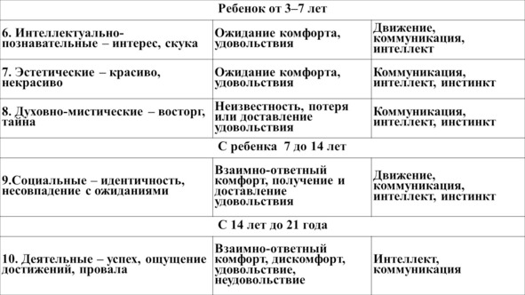 Таб. 3 (часть 2.) Этапы и механизмы формирования эмоэнграмм с 3 лет до 21 гола.
