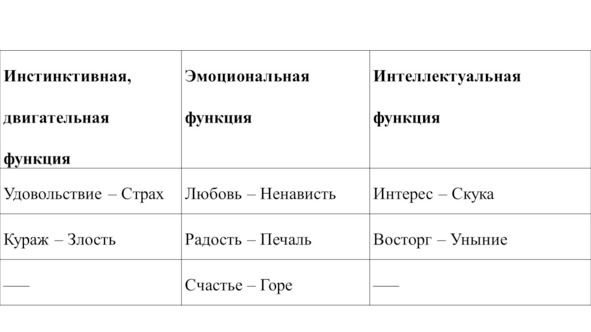 Таб. 5. Базовые пары эмоэнграмм по функциям по Г. И. Гурджиеву