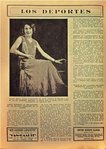Figura 15. Beatriz Concha, vicepresidenta del Comité Femenino de deportes. De: Cromos, 6 de mayo, 1933, p. 20. Hemeroteca Biblioteca Nacional de Colombia.