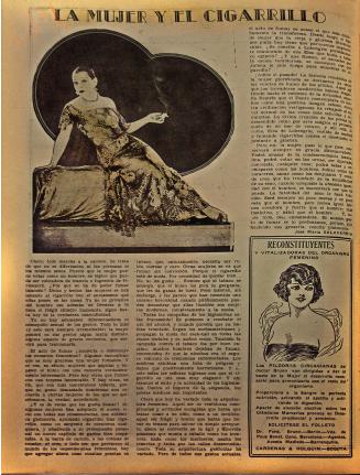 Por otro lado, hace una crítica a las mujeres que fuman porque aparentemente lo hacen sin un sentido específico, por la influencia de las tendencias norteamericanas y londinenses, por una necesidad de quedar bien: “A la barra de carmín, a las cremas de tocador, al cine, a todo esto que pertenece al mundo de los imponderables femeninos fumar sin convicción: porque está de moda” (Salaverría 1933, 25). Al mismo tiempo se habla de la mujer moderna como aquella que puede desarrollar este tipo de actividades, sin embargo, este artículo está criticando este modelo y afirma que va en contra del mejoramiento de la raza.