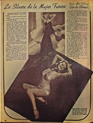 2 La construcción del cuerpo femenino desde la mirada de Hollywood. Según ellos, las siluetas gruesas eran consideradas un símbolo de atraso, de lo viejo: “Nuestra vampiresa de 1940 será curvilínea […] la vampiresa de 1940 será de caderas generosas. A este respecto no deberá ser inferior ni de un milímetro al canon establecido por Mae West” (Estampa 1938, 32).