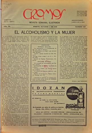 Figura 17. Artículo “El alcoholismo y la mujer”. Revista Cromos, 5 de octubre, 1935, p. 3. Hemeroteca Biblioteca Nacional de Colombia.