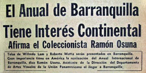 En efecto, dentro de las múltiples estrategias de este proyecto general la ampliación progresiva del alcance de los salones fue fundamental, porque de esta manera se buscó legitimar un tipo de iniciativa a partir de la idea de insertar a Cartagena y Barranquilla en circuitos del arte cada vez más amplios, al involucrar a personas e instituciones con alto reconocimiento nacional e internacional. En otras palabras, se trató de buscar aliados de afuera para seguir legitimando lo de adentro. El primer salón que se realizó con este propósito de ampliar el impacto fue el Concurso Nacional de Pintura en Barranquilla en 1955. Clemente Airó, uno de los jurados e invitados de honor, escribió un artículo en El Tiempo que tituló “En Barranquilla. Pintura Colombiana”. Airó inicia su artículo diciendo: