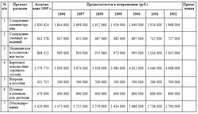 Проект нормальных смет Морского министерства на семилетие 1896–1902 гг.