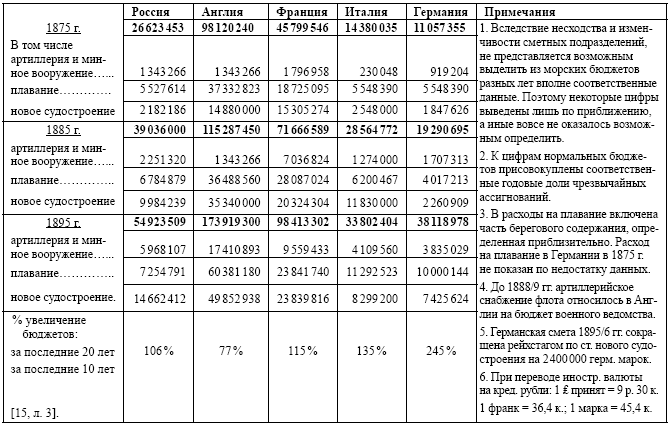 Сравнительная таблица морских бюджетов в кредитных рублях (£ 1 (англ, фунт стерлингов, – О. Ф.) = 9 р. 30 коп.) (5/17 июля 1895 г.)