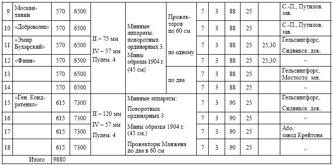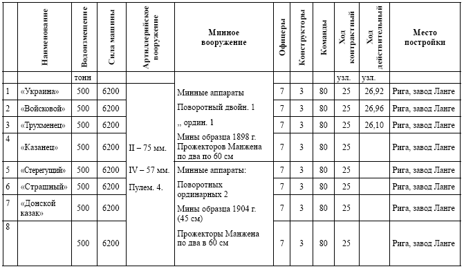 Список минных крейсеров, построенных и строящихся на средства «Особого комитета по постройке флота на добровольные пожертвования». Без даты