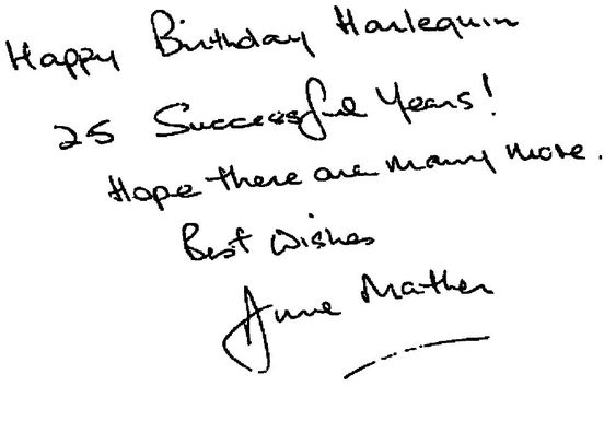 Reflecting on the twenty-fifth anniversary of Harlequin Presents® has led me to contemplate other milestones. It’s twenty-four years since my first book was published by Mills & Boon in the U.K., and fifteen since my initial appearance in Presents. Over the years I trust my values have deepened and expanded, causing the conflicts and conversations of my characters to break new ground. Growth is one thing anniversaries commemorate—my congratulations to Harlequin for the phenomenal growth of Harlequin Presents®. May it continue!