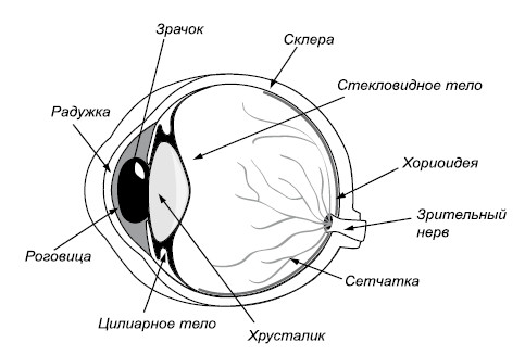 Зрачок – отверстие в центре радужной оболочки. Через него свет попадает внутрь глаза. При ярком освещении зрачок суживается, при слабом – расширяется. За зрачком расположен хрусталик, представляющий собой линзу, кривизна которой может изменяться под действием специальных мышц. Задача хрусталика – фокусировать изображение на сетчатку.