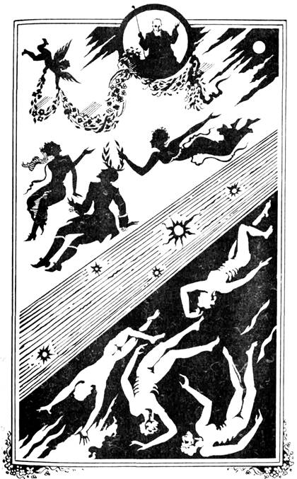 Продолжая идти своей дорогой, мы встретили важного духа, одиноко шествующего с необычайно внушительным выражением лица; не смутившись его неприступностью, мы полюбопытствовали, какой он вытянул жребий. Он с улыбкой отвечал, что его ожидает слава мудрого человека с капиталом в сто тысяч и что он уже сейчас репетирует внушительность, которая полагается для этой роли на том свете.