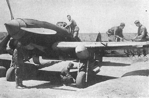 Технический состав готовит самолет к боевому вылету.