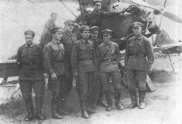 Группа курсантов Луганской военной школы летчиков На снимке отмечены Т. Т. Хрюкин и М. А. Яковенко Середина 30-х годов.