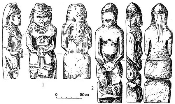 Половецкие каменные изваяния: 1 – статуя женщины; 2 – статуя мужчины