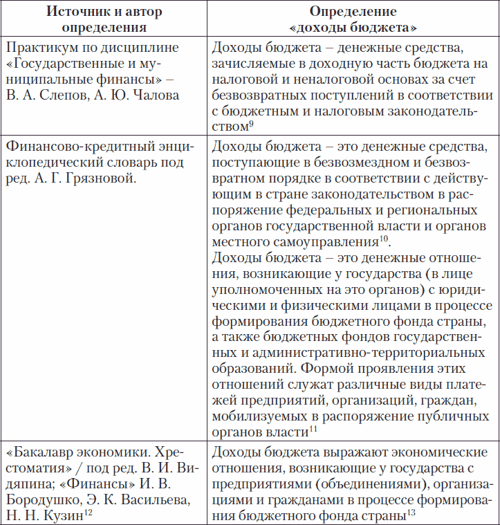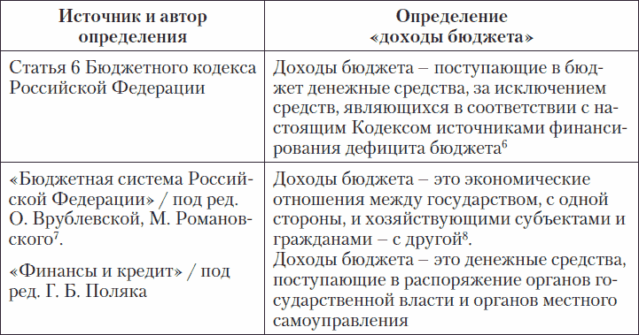 Таблица 1. Определения «доходы бюджета»