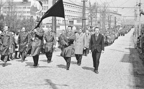 Завод Моторпал хоронит своего ведущего работника и коммунистического лидера Евгения Плоцка, погибшего в знак протеста против нормализации. Йиглава, апрель 1969 г. Фото из архива Алеша Плоцка, внука погибшего.