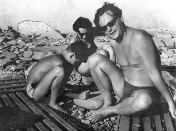 Карел Йирка со своей семьёй на пляже в Сочи, 1965 г. Архив Ольги Ломовой (Йирковой), Прага.