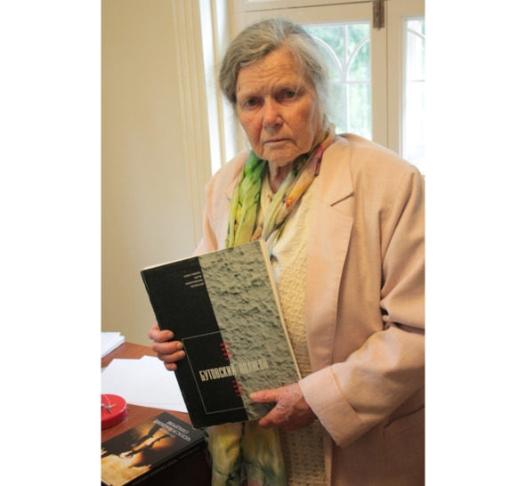 Внучка репрессированного Иосифа Владимировича Филиповича, ученого-лесохимика, создателя первого в России канифольного завода, Э. Г. Филипович с книгой памяти «Бутовский полигон», 2013 г.