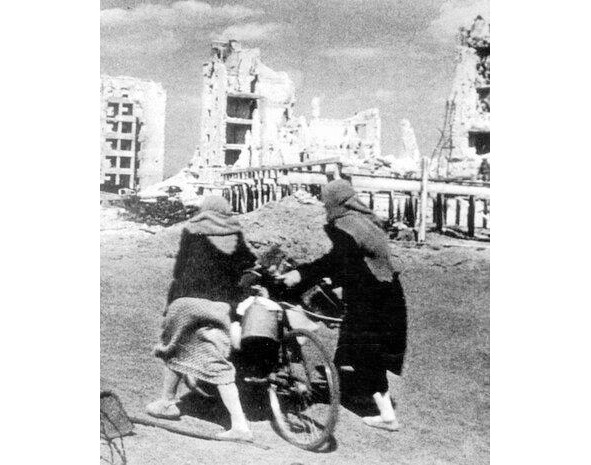 Жители Сталинграда везут на велосипедах свои вещи, покидая город, 1942 г. (фото из интернета)